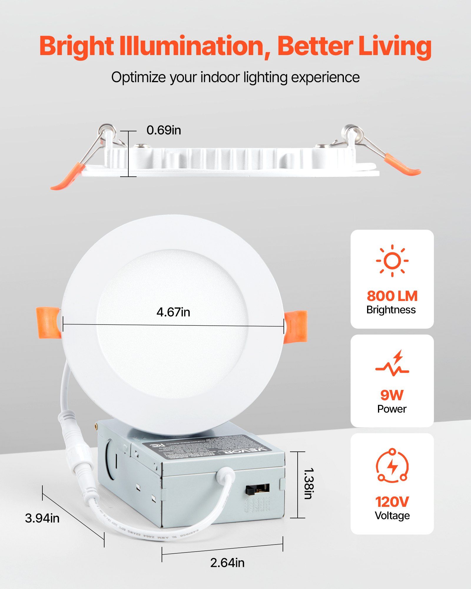 1.High Brightness, Low Energy: Get up to 800 lumens of crisp, flicker-free light while keeping energy costs low. These LED recessed ceiling lights are built for long-term use, combining high output with energy-saving efficiency