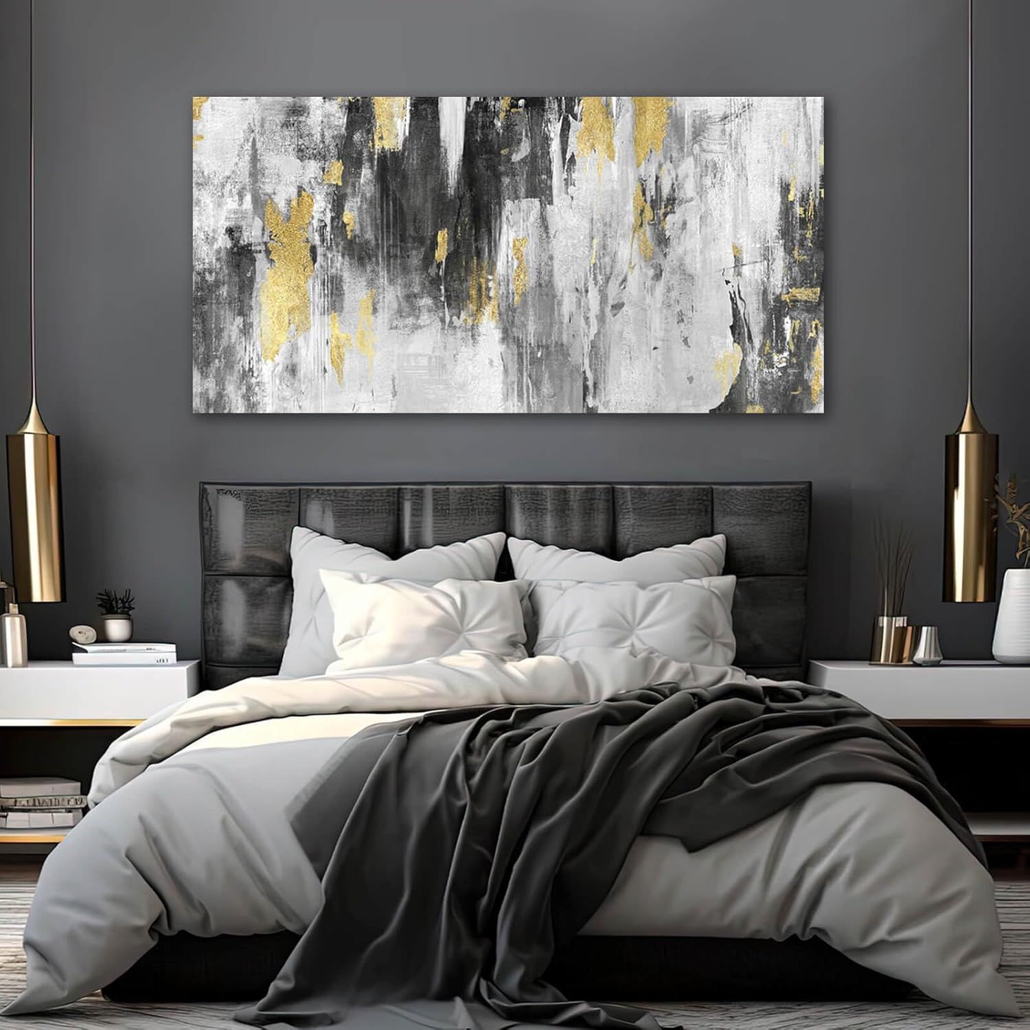 Enhance your space with grey abstract canvas wall art featuring gold textured accents perfect for modern home or office décor.